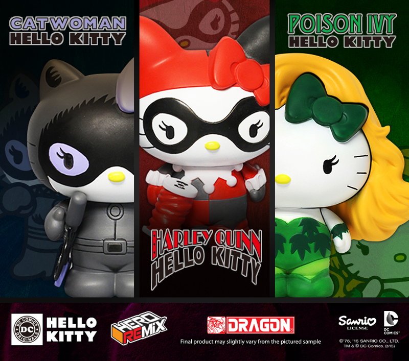 Dragon presents its Hero Remix series of Hello Kitty x DC Comics collectible figures. Each figure stands around 3.5" tall.